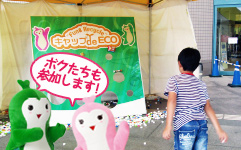 ■ペットボトルのキャップを投げて、キャップボード(写真)の穴に入ったら素敵な景品をプレゼント!