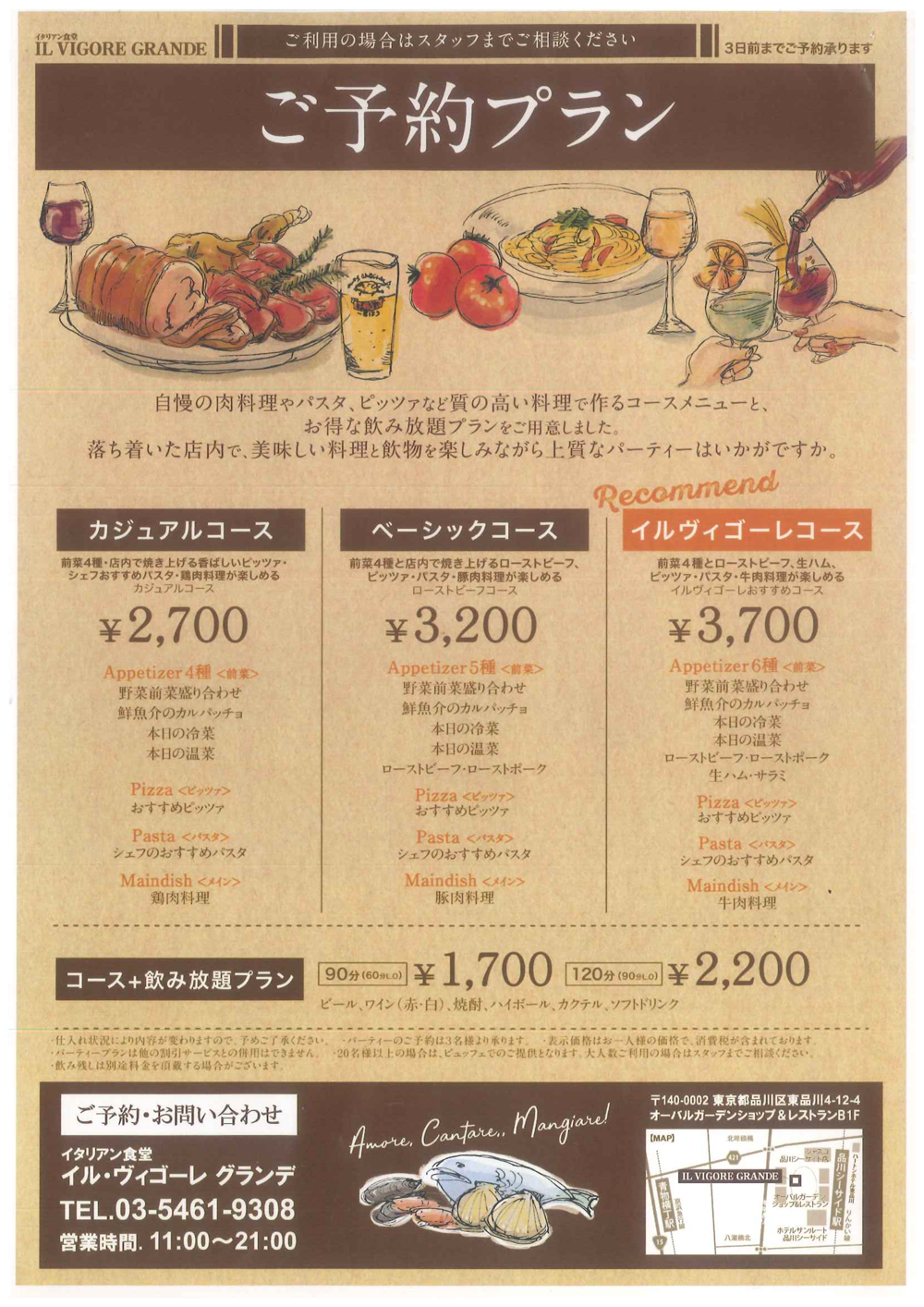 美味しいイタリアンを気軽に楽しめる、「イタリアン食堂」。新鮮な食材をふんだんに使った料理、豊富なワインを温もりのあるクラシカルな雰囲気の店内でご堪能ください。